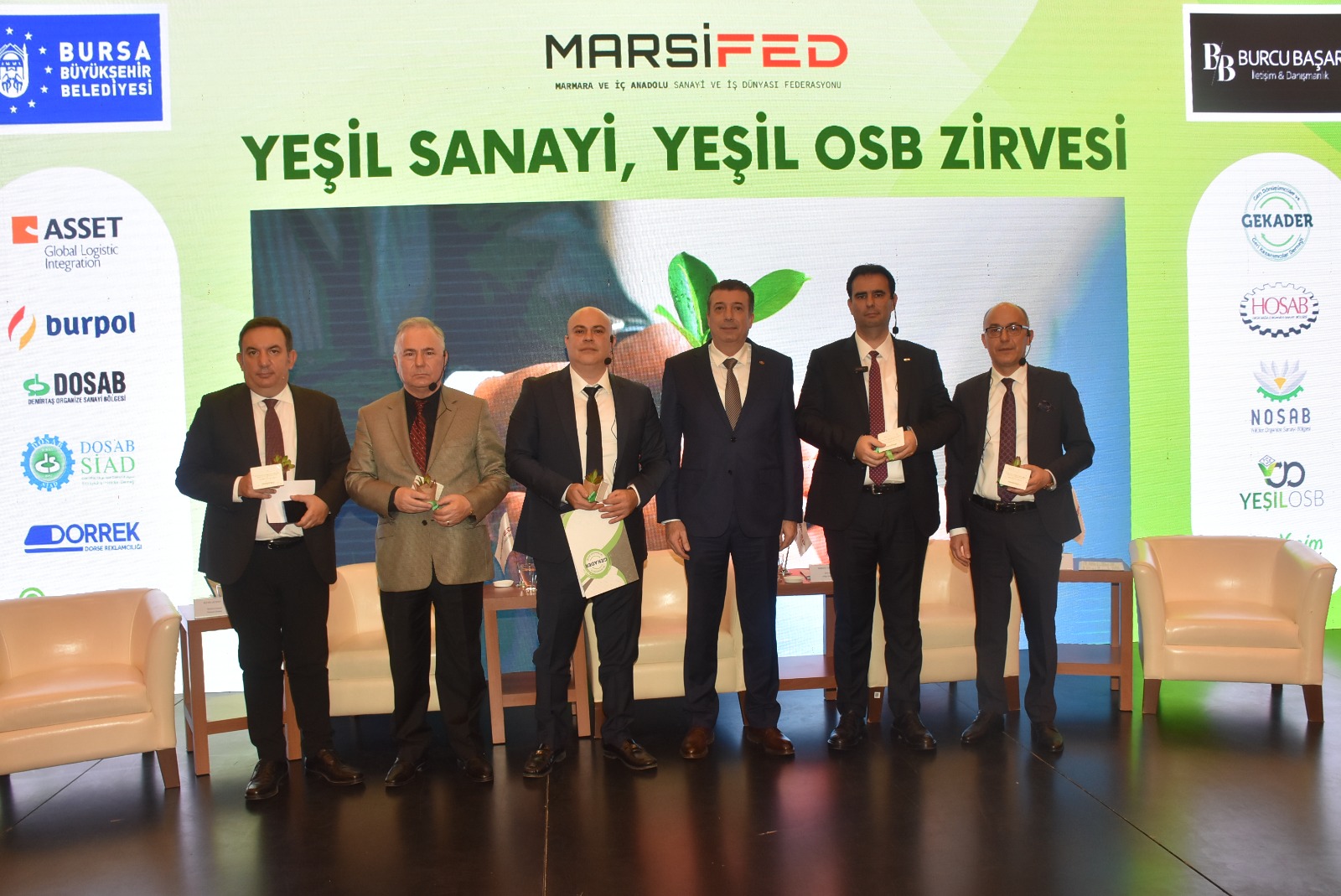 Marmara ve İç Anadolu Sanayi ve İş Dünyası Federasyonu ve Bursa Büyükşehir Belediyesi ev sahipliğinde düzenlenen “Yeşil Sanayi ve Yeşil OSB Zirvesi” Merinos AKKM’de gerçekleştirildi. MARSİFED Yönetim Kurulu Başkanı Sn. Osman Akın, Bursa Büyükşehir Belediyesi Genel Sekreter Yardımcısı Sn. Mehmet Emin Direkçi ve BTSO Yönetim Kurulu Başkanı İbrahim Burkay açılış konuşmalarını gerçekleştirdi.