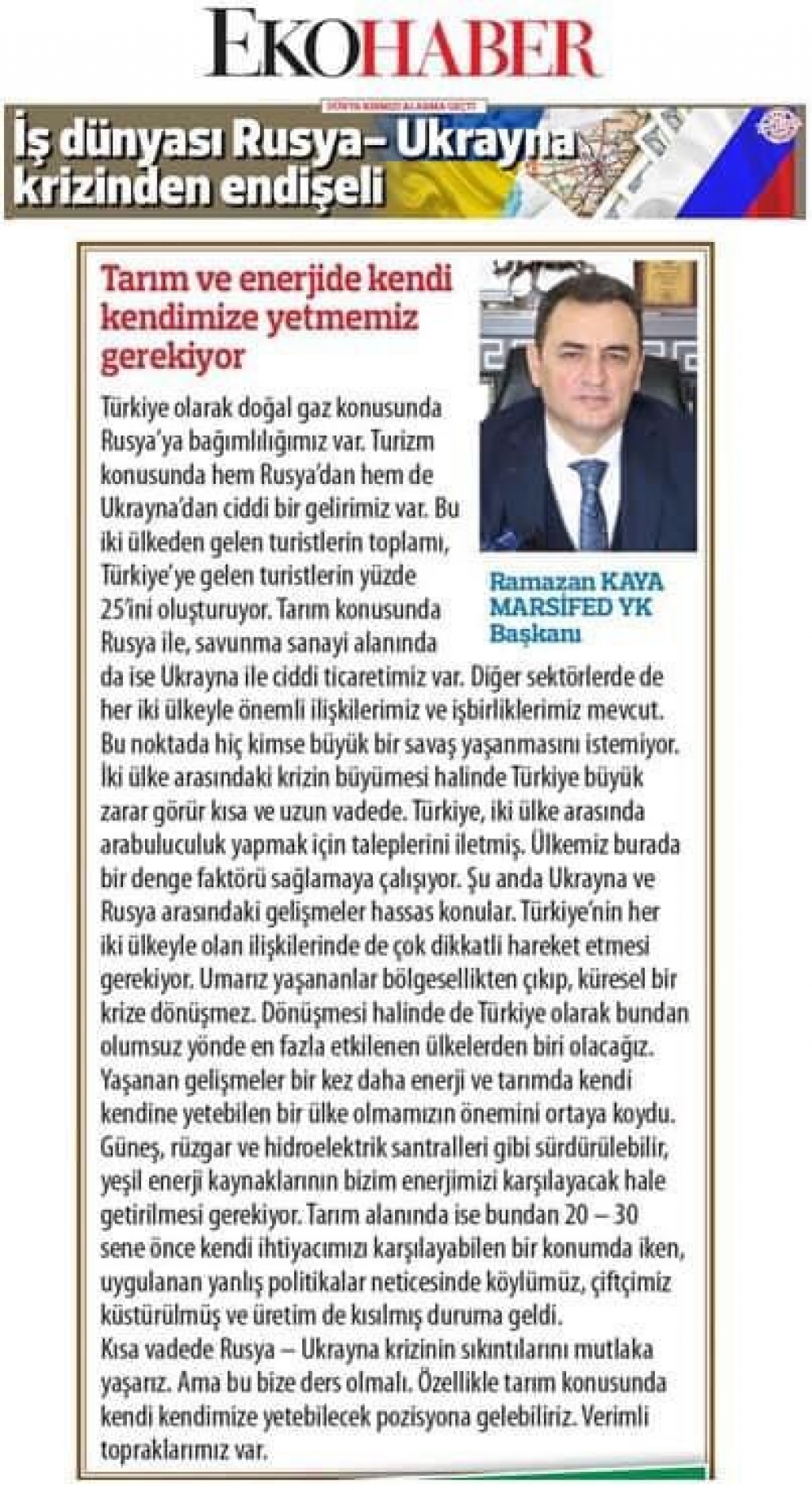 Başkanımız Sn. Ramazan Kaya' nın “EKOHABER Gazetesine” yansıyan haberi...