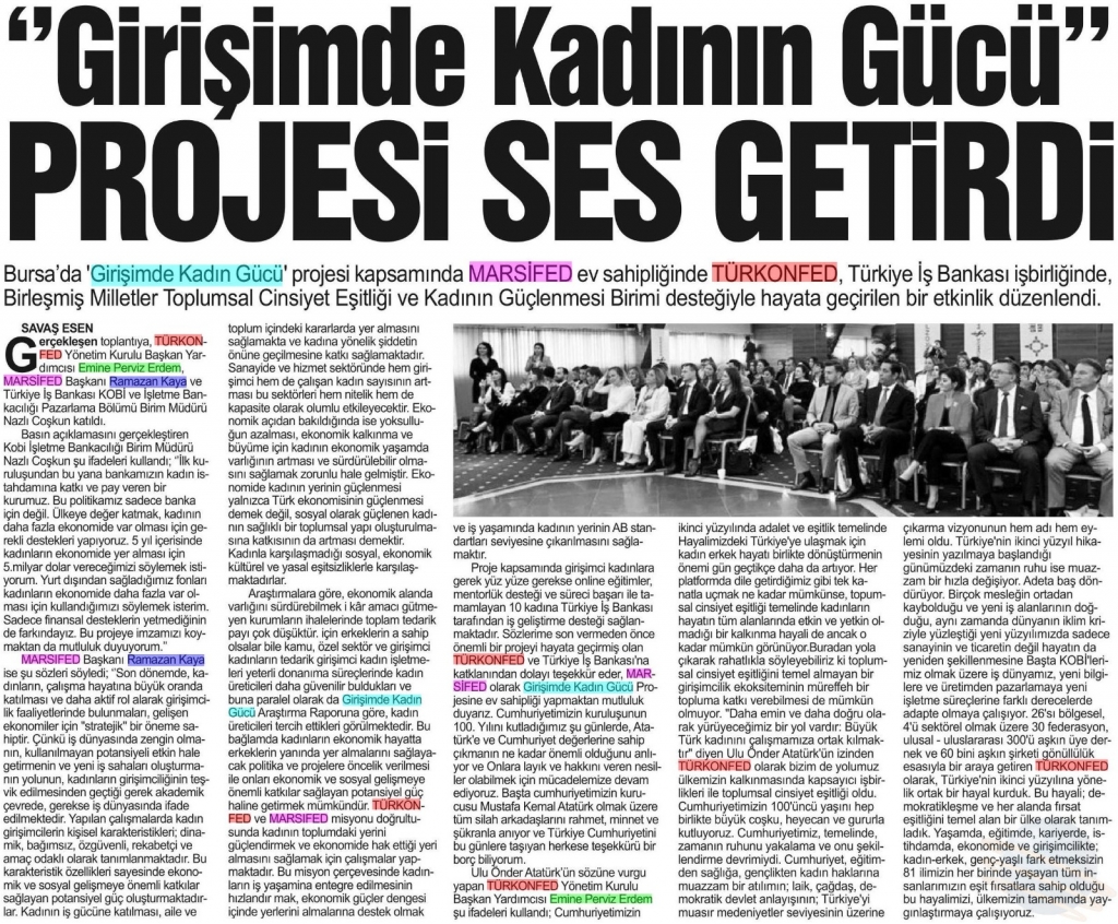 MARSİFED OLARAK GERÇEKLEŞTİRMİŞ OLDUĞUMUZ GİRİŞİMDE KADIN GÜCÜ PROJESİNİN BASINA YANSIMALARI…